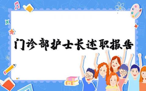 门诊部护士长述职报告是指门诊部护士长向医疗机构的上级部门或者领导,汇报自己在过去一段时间内(通常是年度或季度)的工作表现、工作成果、经验教训以及工作计划的一种书面报告。述职报告通常用于评估护士长的职责履行情况,以便上级部门或领导做出相应的决策和指导。以下是有关于门诊部护士长述职报告通用范文和护士长述职工作汇报模板合集的有关内容,欢迎大家阅读!
